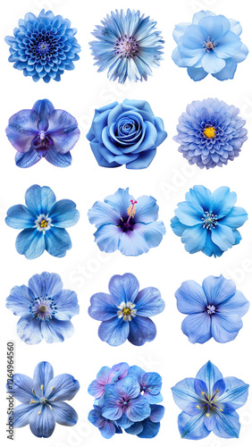 PNG blue flower design element set, transparent background
