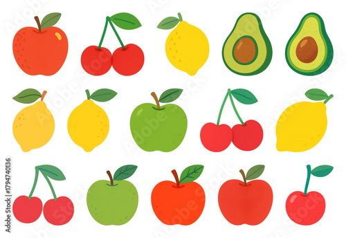 PNG Colorful fruits with simple illustrations, element set on transparent background