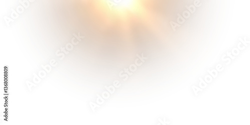 PNG sunlight overlay featuring golden sunrays, soft glare, and flare effects. Isolated sun in PNG format on a transparent background. Royalty-free stock image for warm and radiant designs.