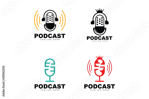 Podcast Logo, Vector, Headset and Chat, Simple Vintage Microphone Design