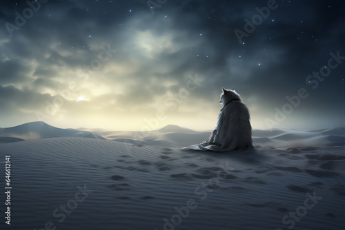 Polar Bear in North Pole with scenic snow mountain view, create using Generative Ai Tools