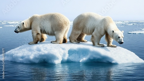 Polar Bears on Shrinking Ice Amid Rising Sea Levels