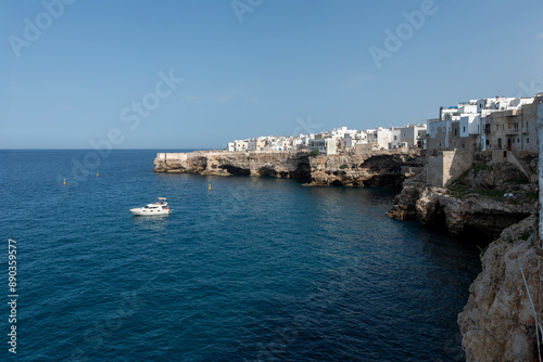 Polignano a mare, white and perched on a cliff overlooking a dream inlet.