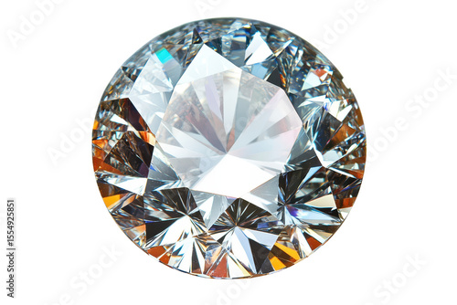 Polished diamond viewed from the top isolated on a transparent background showcasing its brilliance and intricate facets under soft lighting conditions