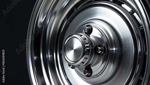 Polished metal wheel with radial symmetry, reflecting industrial elegance and precision.