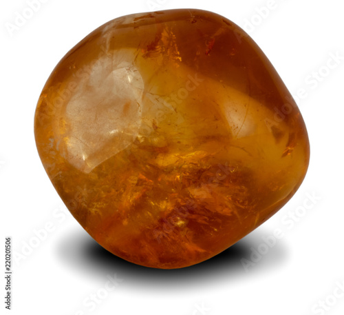 Polished transparent citrine stone isolated on white background