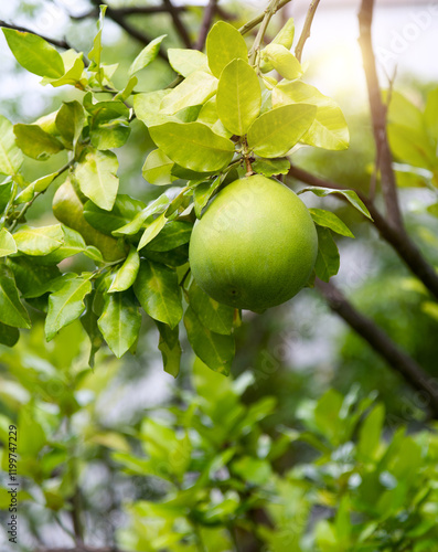Pomelo fruit hanging on the tree