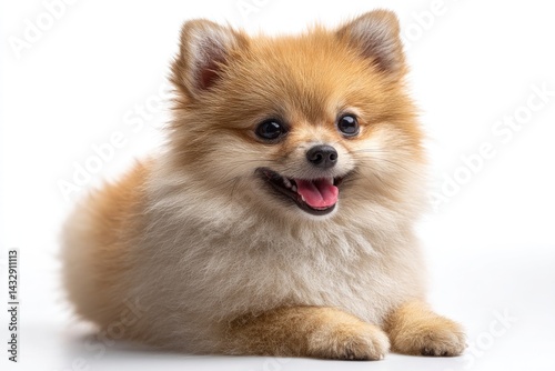 Pomeranian Dog Lying Down on White Background