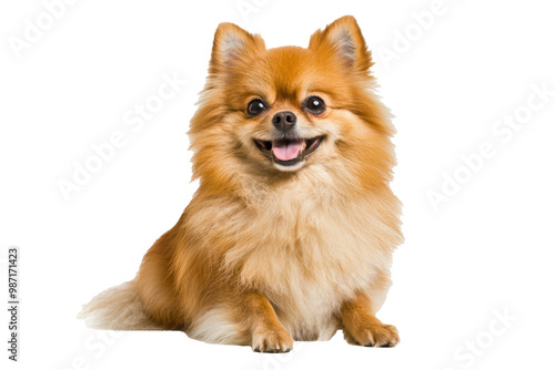 Pomeranian dog sitting and smiling on transparent background, isolate,