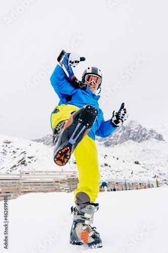 Portait of happy skier in ski area