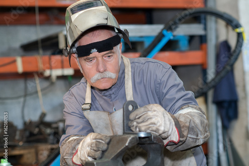 portrait factory senior welder in workshop