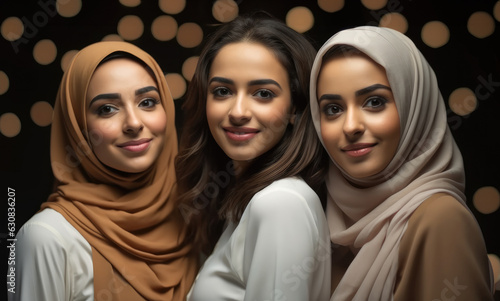 Portrait group of beautiful Arab woman smiling looking at the camera.