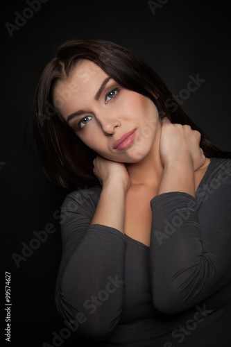 Portrait of a Beautiful Woman Model black background studio - Stock Image