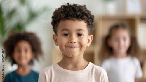 Portrait of a cheerful young boy with an excited positive expression on his face representing the importance of diversity inclusion and effective communication within an educational environment