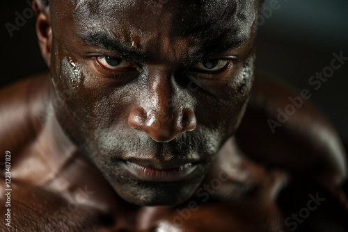 Portrait of a Determined Bodybuilder muscular body Showcasing sports Strength and Focus, Generative AI
