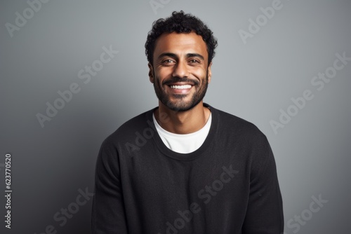 Portrait of a handsome african american man smiling at camera while standing against grey background