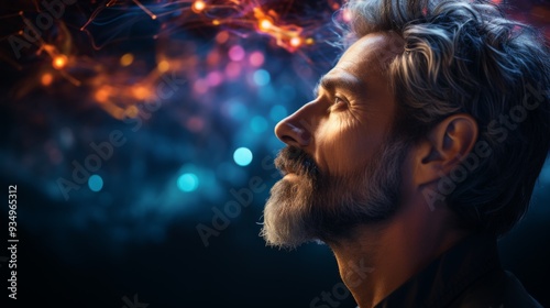 Portrait of a Man's Face in Side View on a Dark Blue Background
