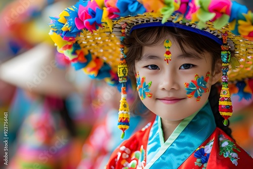 Portrait of a North Korean Woman in Traditional Attire Celebrating a Festival Outdoors. Capturing the Beauty and Pride of North Korean Culture During a Joyous Occasion. A Reflection of Ethnic Heritage