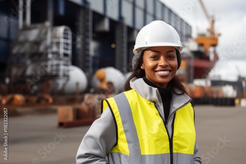 Portrait of a smiling female engineer at a dockyard
