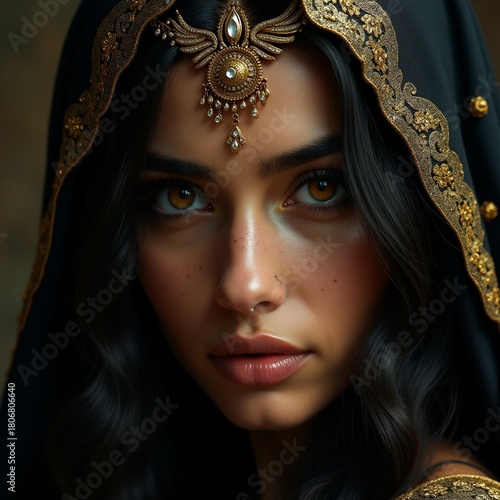 Portrait of a woman in traditional attire with intricate details Generative AI