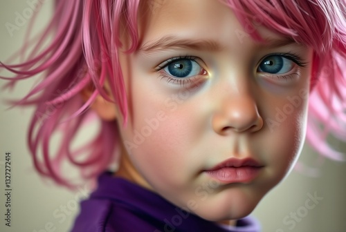 Portrait of a Young Child with Pink Hair and Captivating Blue Eyes