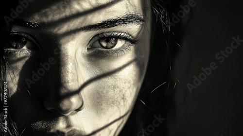 Portrait of a Young Girl with Shadow on Her Face, Perfect for Editorial or Commercial Use Generative AI
