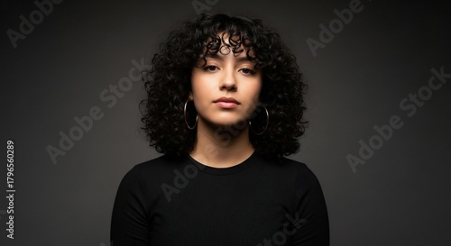 Portrait of a Young Woman with Curly Hair.