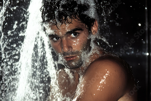 portrait of handsome man taking a shower