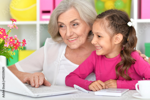 portrait of happy grandmother and granddaughter