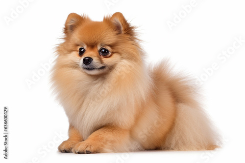 Portrait of Pomeranian dog on white background.