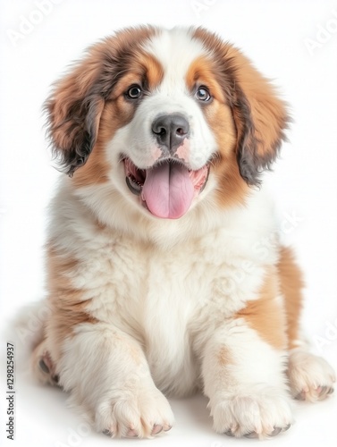 Portrait of Saint Bernard puppy dog sit and smile cheerful