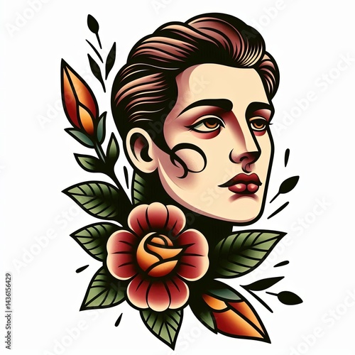 portrait people in traditional cartoon tattoo with smooth gradients