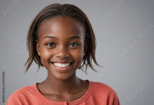Portrait view of a regular happy smiling Burundi girl, ultra realistic, candid, social media, avatar image, plain solid background