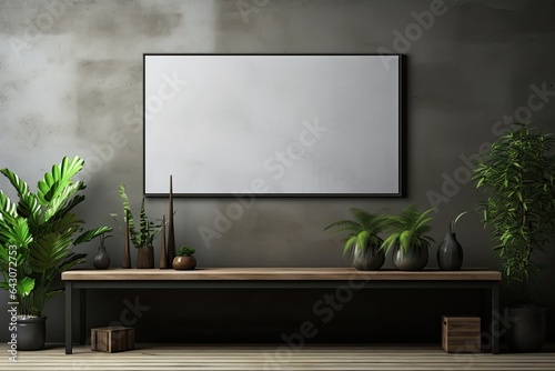 Poster frame mockup in minimalist modern living room interior background, 3D render