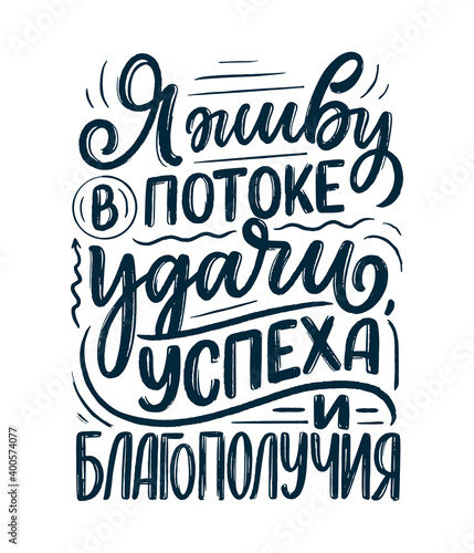 Poster on russian language with affirmation - I live in a stream of luck, success and prosperity. Cyrillic lettering. Motivation quote for print design. Vector