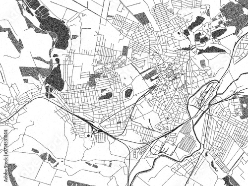 Poster-ready monochrome city map of Sloviansk, Ukraine, with detailed streets and rivers.