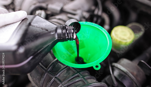 pour gear oil into the car through the watering can. replacement of technical fluids.