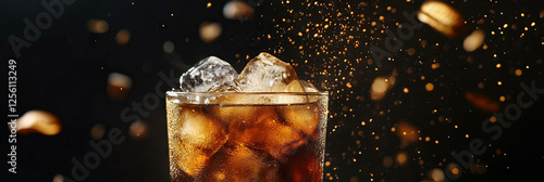 Pouring fresh coffee over ice in a glass with a dark backdrop for a striking aesthetic
