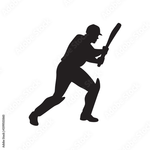 Powerful baseball player silhouette poised to hit dynamic action pose dark background strong graphic design vector illustration sport