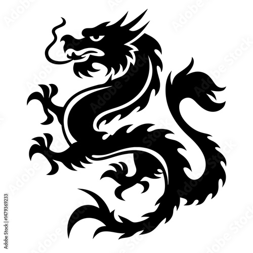 Powerful Black Dragon Silhouette Illustration Fierce Mythological Creature Asian Art Design