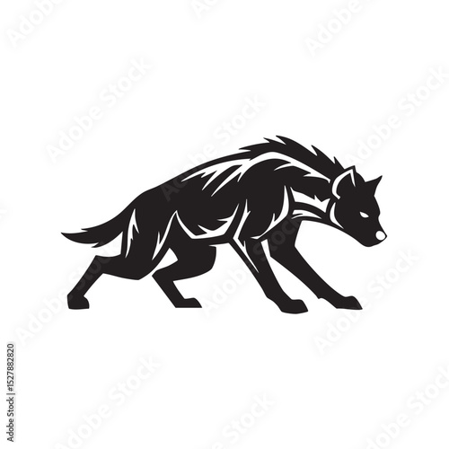 Powerful Hyena Illustration A Striking Black and White Vector Design