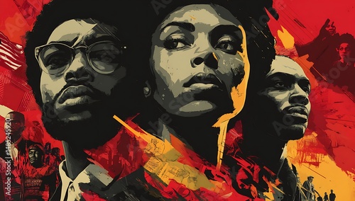 Powerful Portraits of African American Leaders Depicting Strength Resilience and Cultural Pride in Bold Red and Black Hues