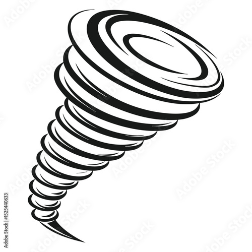 Powerful swirling tornado black and white illustration