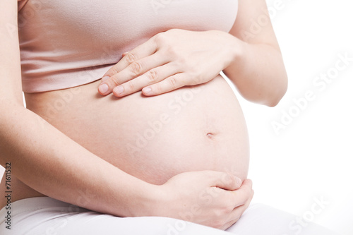 Pregnant Woman Belly. Pregnancy Concept. Isolated on a White Bac