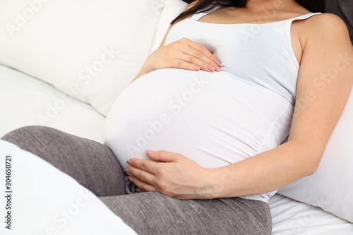 Pregnant woman in bed at home, closeup