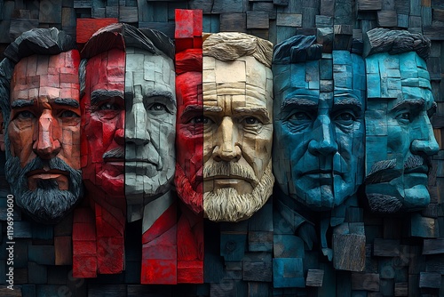 President Day Group of Wooden Heads Against a Black Background