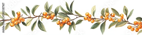 Pristine Buckthorn Berries Isolated on White Background with Lush Green Leaves
