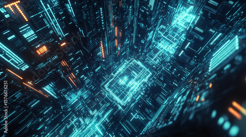 Processor of the future. Concept of global cyberspace. Innovations in computer nanotechnology. 3D illustration of an abstract microchip
