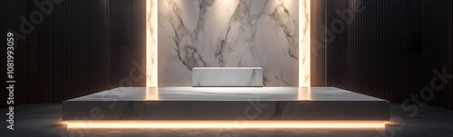 Product display podium with gray and Dark blue light Background