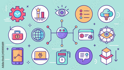 Professional business technology icons pack transparent background